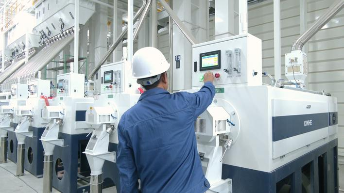 整条生产线采用5G+物联网技术,串联起从原料入仓到去石、砻谷、筛分、碾米、抛光、色选等35道工序,实现全程自动化。昔日需要10余人值守的车间如今仅需两名员工。