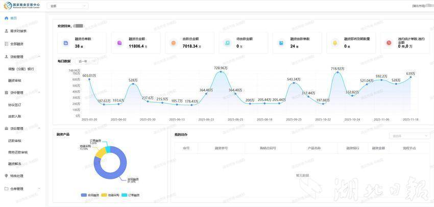 截至目前,湖北粮食交易供应链融资有多种模式,已帮助省内17家粮食企业获得“竞拍贷”“竞采贷”等融资贷款7018.34万元,助力企业在国家粮食交易平台成交各类粮源4.24万吨。